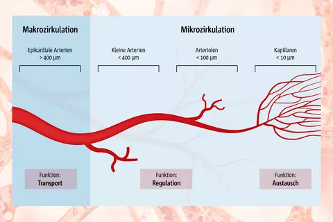 Die Mikrozirkulation des Blutes beschreibt den Blutfluss in den kleineren Gefäßen, die den Austausch von Sauerstoff, Nährstoffen, aber auch Abfallprodukten ermöglichen. Hierzu gehören auch die Arteriolen, welche zu den feinsten Gefäßen, den Kapillaren führen. Diese sind dünner als ein Haar, nur 5 Millionstel Meter im Durchmesser. Deshalb heißen sie auch „Haargefäße“ oder auf Lateinisch „Kapillaren“. Diese Gefäße sind besonders durchlässig, so dass durch sie Sauerstoff und Nährstoffe an das umliegende Gewebe abgegeben werden.